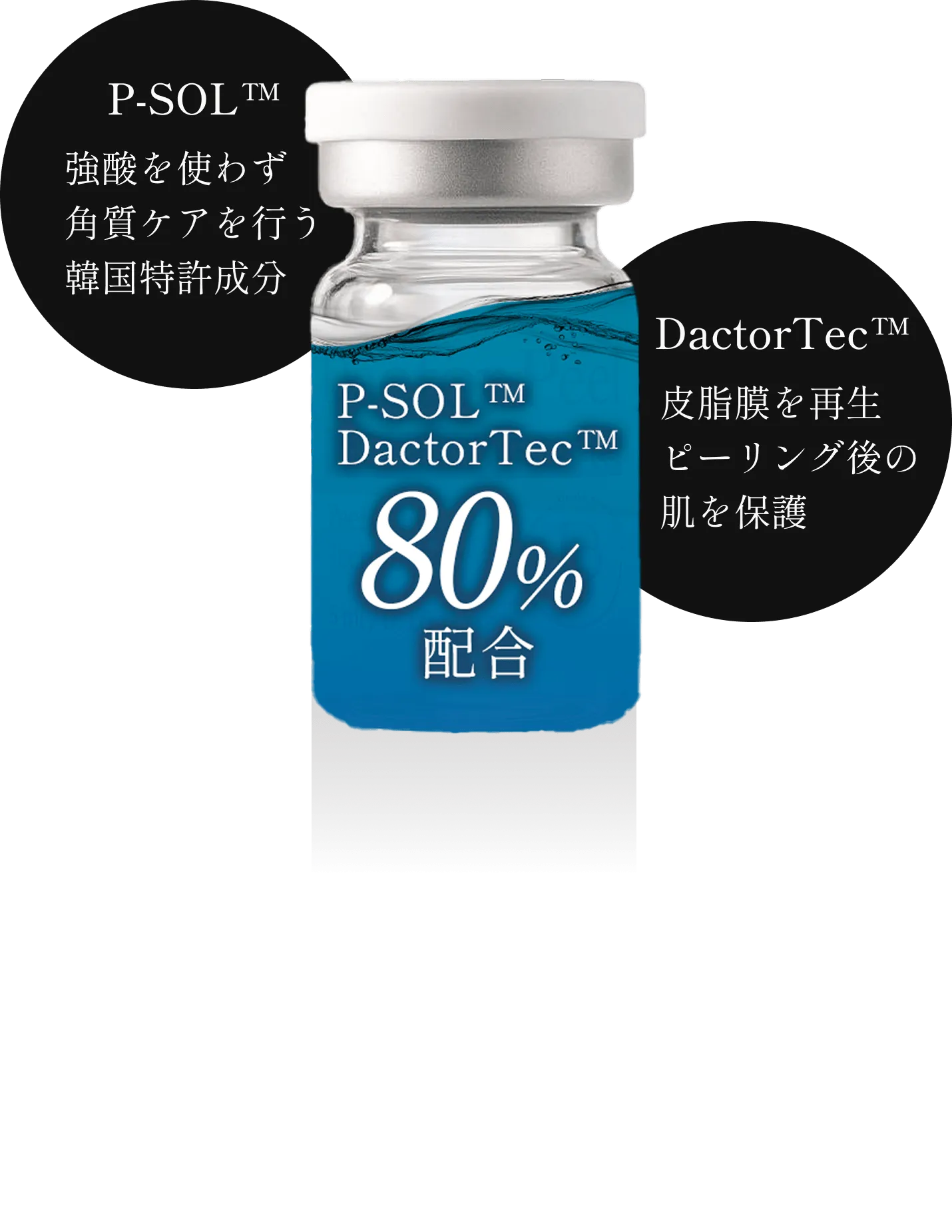 Youth P-Sol™ × DactorTec™ を80%高濃度配合。 独自のW特許配合で安全性と即効性を同時に実現。